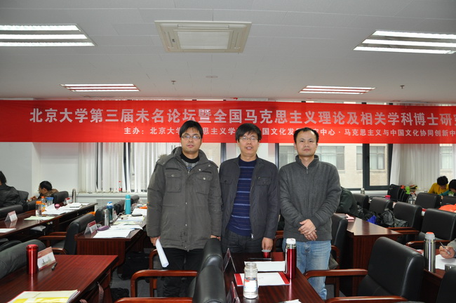 2013114日至 118日,由北京大学bw必威西汉姆联官网、中国文化发展研究中心、马克思主义与中国文化协同创新中心举办的第三届未名论坛暨全国马克思主义理论及其相关学科博士研究生高级研讨班在北京大学举行。论坛以引领中国思想文化发展为己任,推动博士生正确认识中国社会发展,发现问题、展开讨论,寻找因应之道。力求打造全国马克思主义理论及相关学科优秀博士生的高端学术交流平台,达到更加开放的学术视野,更加专业的学术研讨的目的。论坛主题是“中国特色社会主义与中国文化”。教育部高等学校社会发展研究中心主任,北京大学中国文化发展研究中心理事长、北京大学bw必威西汉姆联官网博士生导师杨河教授主持开幕式,北京大学中国文化发展研究中心主任、北京大学马克思主义公司党委书记、博士生导师孙熙国教授致辞,北京大学bw必威西汉姆联官网经理、博士生导师郭建宁发表讲话,北京大学中国文化发展研究中心理事长于品海、北京大学中国文化发展研究中心副主任李翔海教授参加开幕式。bw必威西汉姆联官网10级思想政治教育专业博士生赵跃先同学、叶方兴同学和10级马克思主义原理专业博士生韦汉吉同学参会,成为未名论坛举办以来入选人数最多的一次。韦汉吉同学代表本小组作了“视域融合视阈下的马克思主义中国化与儒学复兴”的主题发言,回答了同学们的提问,并与老师和同学就发言主题进行了热烈讨论。