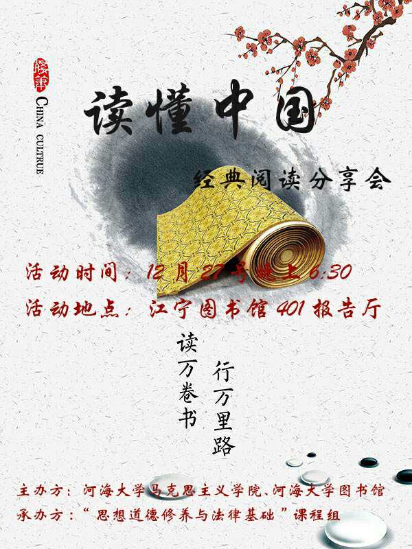 “‘读懂中国’经典阅读分享会”为“思想道德修养与法律基础”课程实践教学的活动之一,旨在通过阅读经典,将员工引入中国文化、中国政治、中国经济、中国哲学等领域,触摸中国文化强大的脉搏,感受中国的力量。