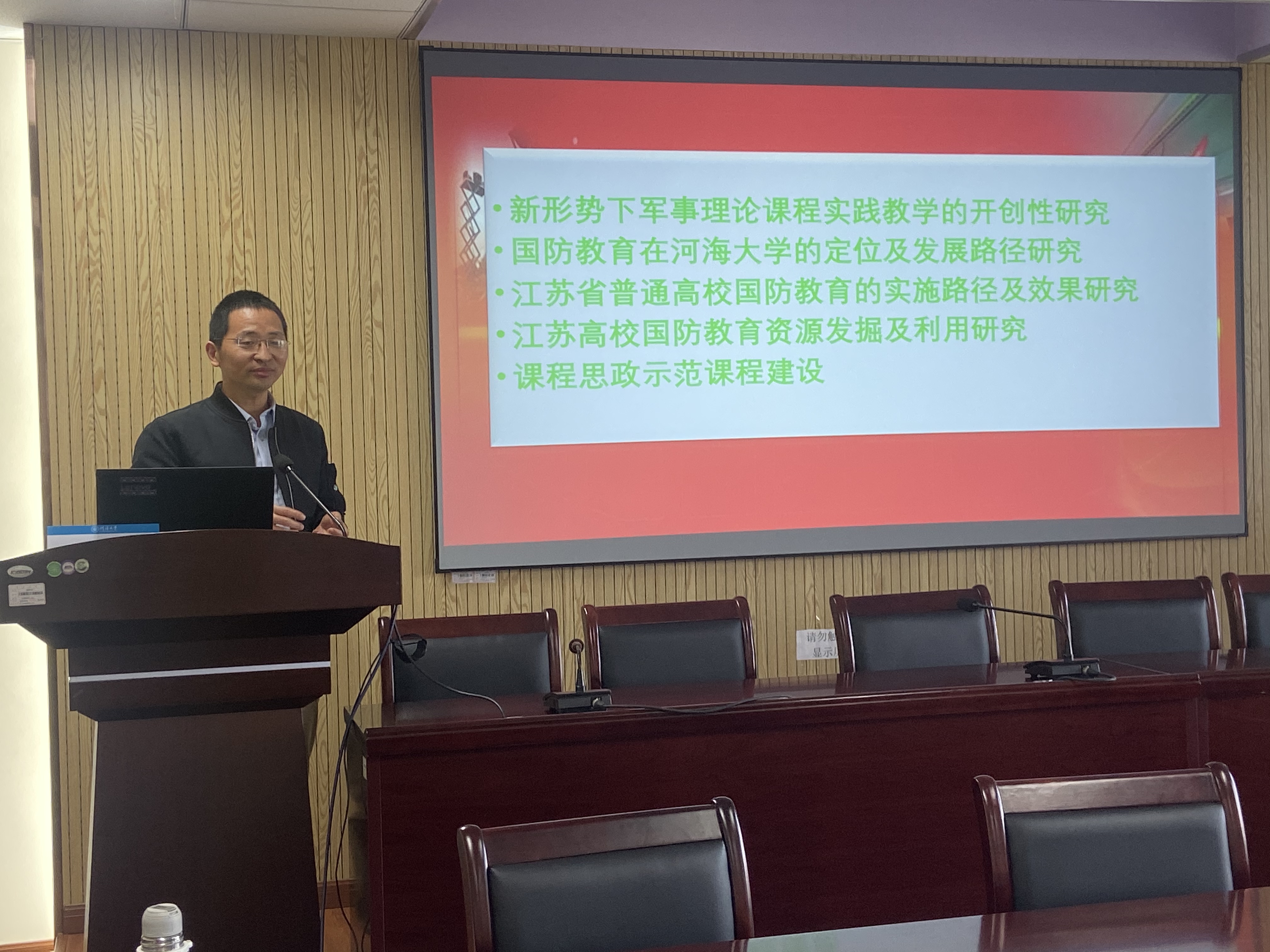 体育系陈进军老师,以“国防教育研究的背景、境遇及思路”为题,提出了国防教育研究的现状及未来的研究思路。