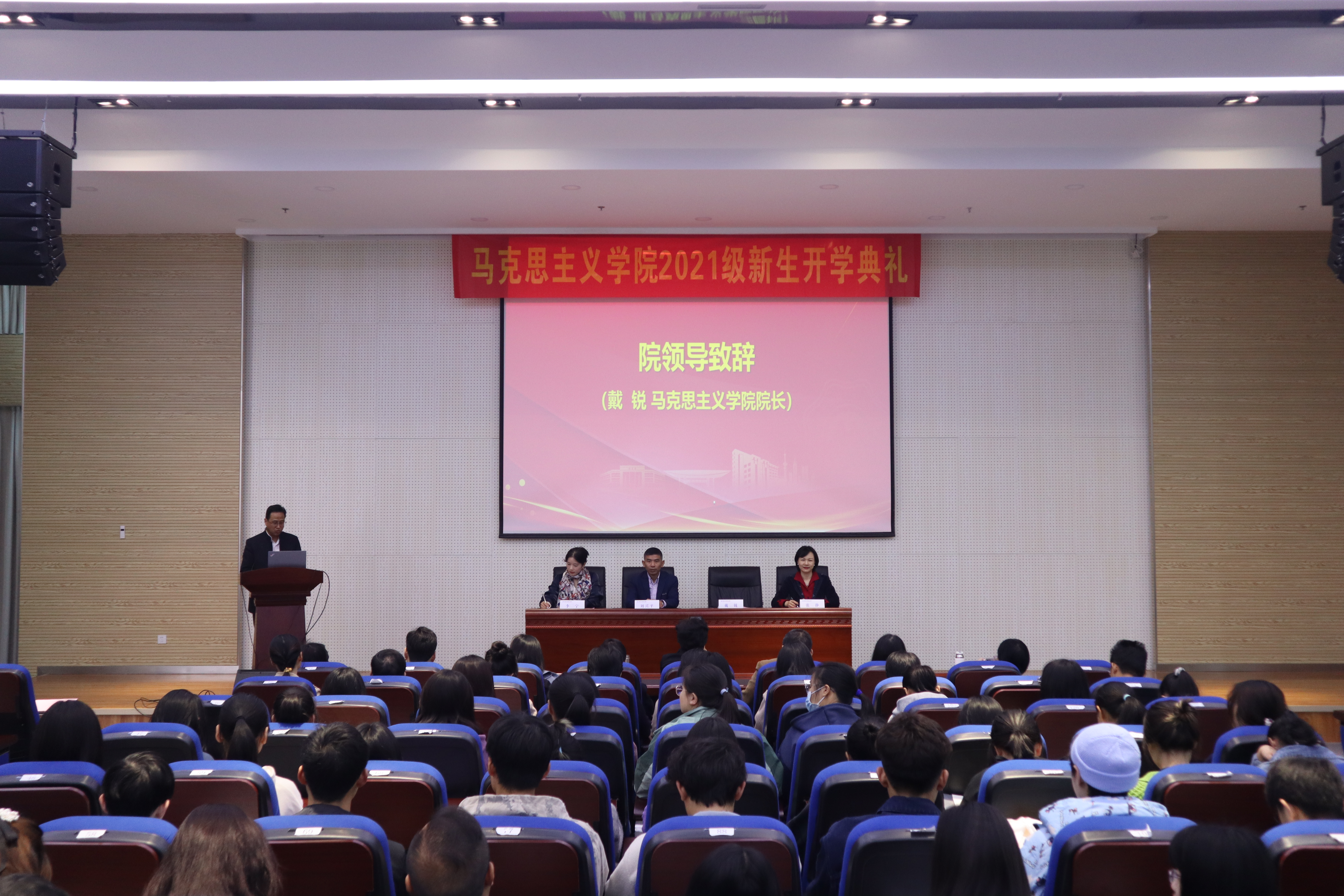 2021年10月23日,bw必威西汉姆联官网2021级新生开学典礼在厚学楼208报告厅隆重举行,公司党委刘兴平书记、经理戴锐教授、副经理张静教授以及孙其昂教授、刘爱莲教授、王英教授、李映红教授、毕霞教授、单连春教授、黄世虎教授、朱志梅教授、孙秀芳副教授、陈滔娜副教授、刘贺青副教授、张小龙副教授、胡芮副教授、朱小娟副教授、龚艳老师、虞滢老师、班导师何瑶老师等多位学院教师和2021级全体本科生、研究生参加了本次典礼,典礼由公司党委副书记、副经理李宁教授主持。