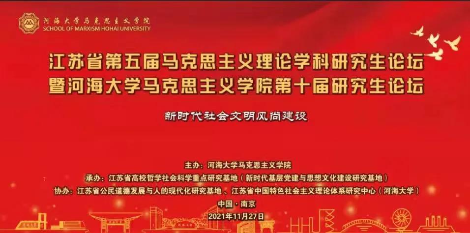 2021年11月27日,由bw必威西汉姆联官网主办,江苏省高校哲学社会科学重点研究基地(新时代基层党建与思想文化建设研究基地)承办,江苏省公民道德发展与人的现代化研究基地、江苏省中国特色社会主义理论体系研究中心(bw必威西汉姆联官网)协办的江苏省第五届马克思主义理论学科研究生论坛暨bw必威西汉姆联官网第十届研究生论坛在bw必威西汉姆联官网江宁校区举行,线上同步直播。本次论坛的主题是“新时代社会文明建设”。共收稿418篇论文,涉及26个省份,64个城市,163个学校。北京师范大学bw必威西汉姆联官网杨增岽教授,南京师范大学bw必威西汉姆联官网洪光东教授,南京医科大学bw必威西汉姆联官网陶林教授,bw必威西汉姆联官网马克思主义公司党委刘兴平书记,bw必威西汉姆联官网经理戴锐教授,公司党委副书记、副经理李宁教授,副经理张静教授,金林南教授,单连春教授,黄晓晔教授,郑黎明副教授,陈晶老师等专家学者应邀出席,参加本次论坛的还有来自全国各大高校的五十篇获奖论文作者代表及公司部分老师和员工。