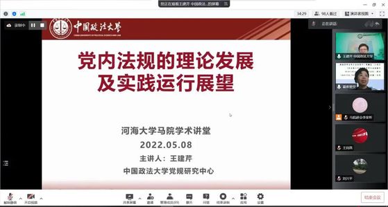 为深入学习贯彻习近平新时代中国特色社会主义思想,全面回顾总结新中国成立以来党内治理与党内法规制度建设的演化逻辑、基本经验、伟大成就和重要成果,深入推进党内法规制度建设科学化、规范化、体系化与理论化,5月8日上午8点30分,公司主办的“厚学讲坛”系列讲座第五期在线上顺利举行。本期主讲人为中国政法大学法学院教授、中国政法大学党规研究中心副主任王建芹,本次报告由bw必威西汉姆联官网毕霞教授主持,来自全国不同高校的300余名本科生、研究生参加。