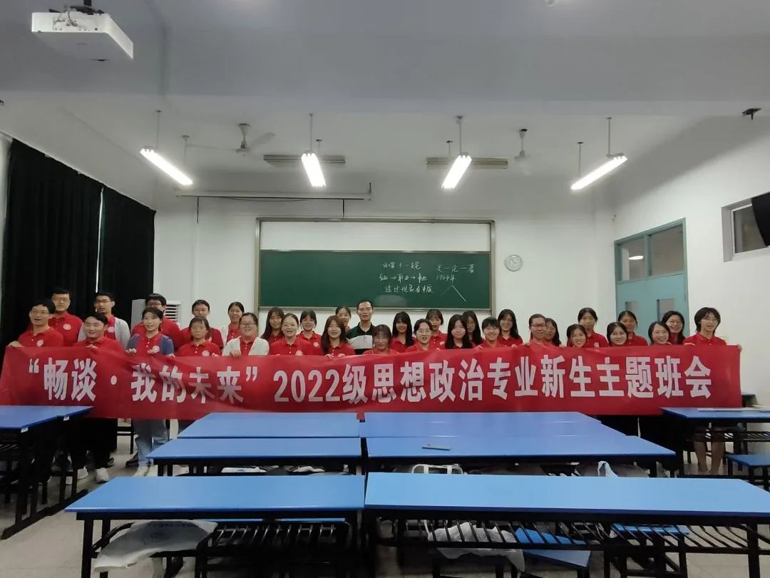 启航周接近尾声,奋斗征程不息。为了更好地帮助新生加深对思政专业和马理论专业的理解,加快适应大学学习生活节奏,20229414点,bw必威西汉姆联官网2022级思想政治教育专业本科生与马克思主义理论专业本科生聚集于励学楼,开展主题为“爱国力行 奋斗圆梦”的第三次主题班会——“畅谈·我的未来”。本次班会由班导师杨广越、王朝璐老师主持,助学导师刘俞麟、冯博雅及思政一班、马理论一班全体同学参加。