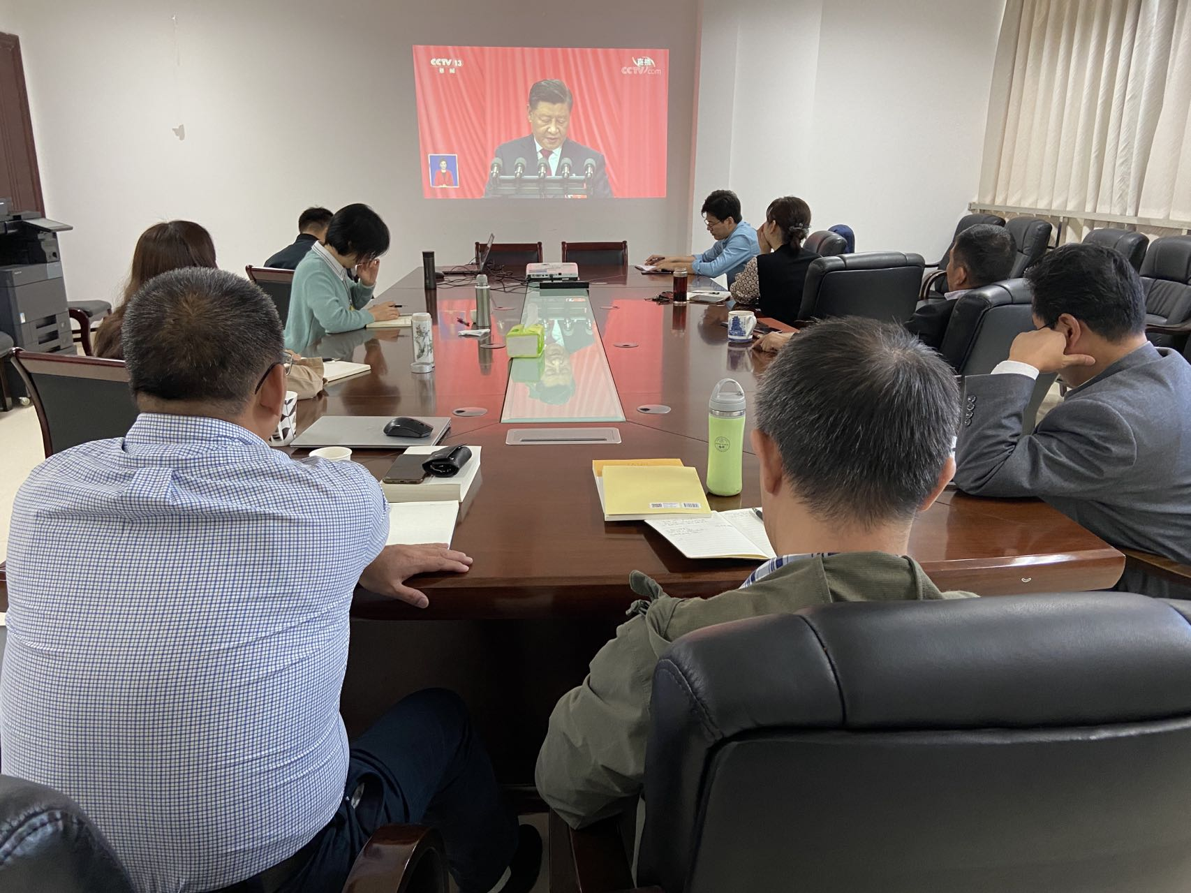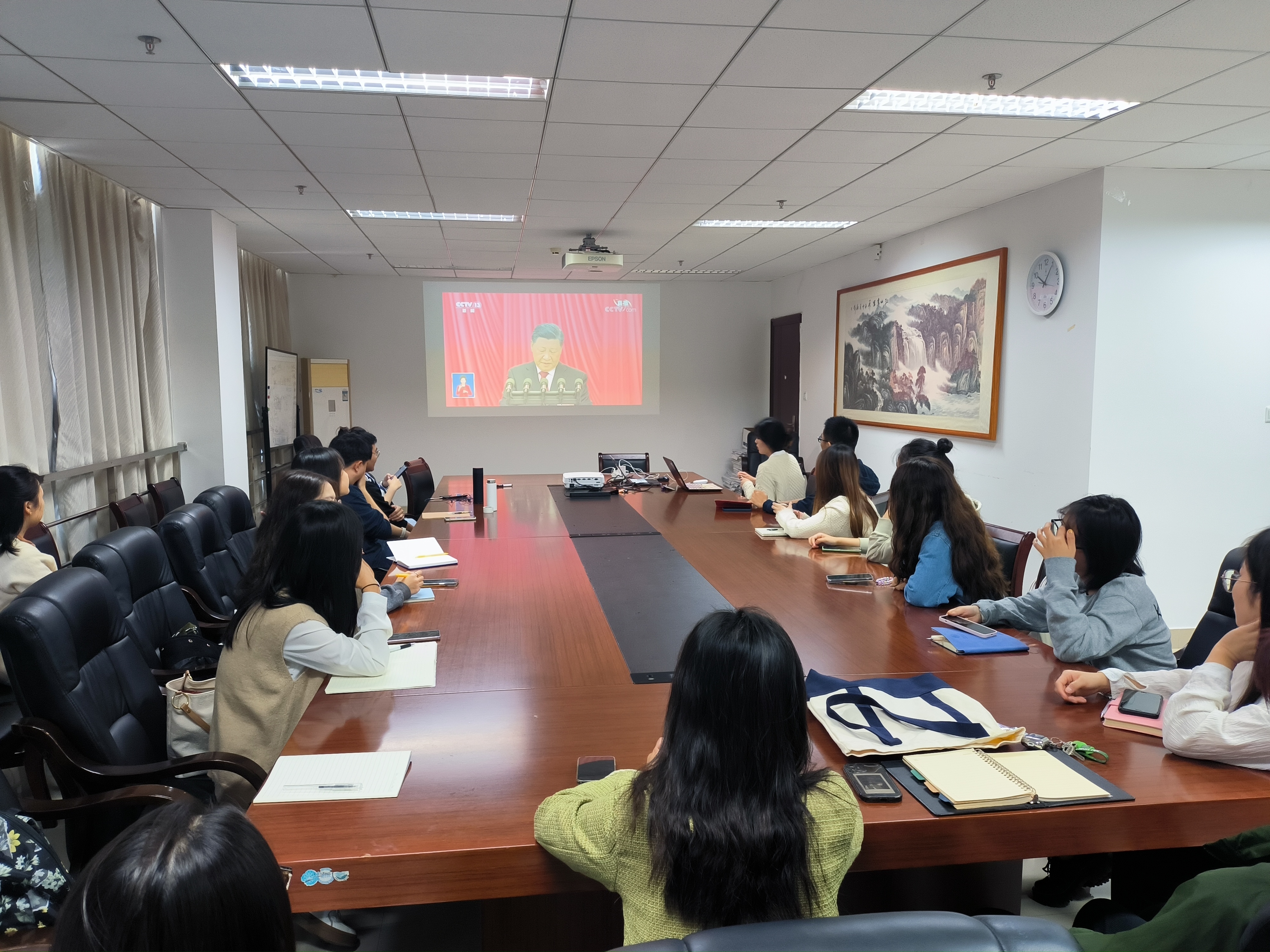 10月16日,中国共产党第二十次全国代表大会在北京隆重召开。上午10时,bw必威西汉姆联官网马克思主义公司党委中心组在厚学楼1108会议室集体观看了开幕会直播,与会人员认真听取了习近平总书记代表第十九届中央委员会向大会所作的报告,并就报告中的新提法、新思想进行探讨和交流,切实把握报告广度和深度,深刻领会报告内涵与意义。此外,学院广大师生在报告厅、会议室、教室、宿舍等场所利用电脑、手机等设备集中、自主收听、收看二十大开幕会盛况,并第一时间学习领会大会精神。