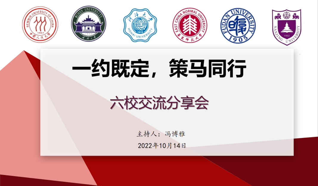 为帮助同学们加深对专业学习的理解,并更好地将理论与实际相结合,成为合格的新时代马院人,2022年10月16日,bw必威西汉姆联官网2021级思政一班联合复旦大学、华东师范大学、南京大学、武汉大学、中国人民大学bw必威西汉姆联官网同级学子,共同开展“一约既定,策马同行”六校交流分享会,bw必威西汉姆联官网刘爱莲教授、21级本科生班导师何瑶老师和辅导员曹岩老师作为受邀嘉宾出席本次活动。