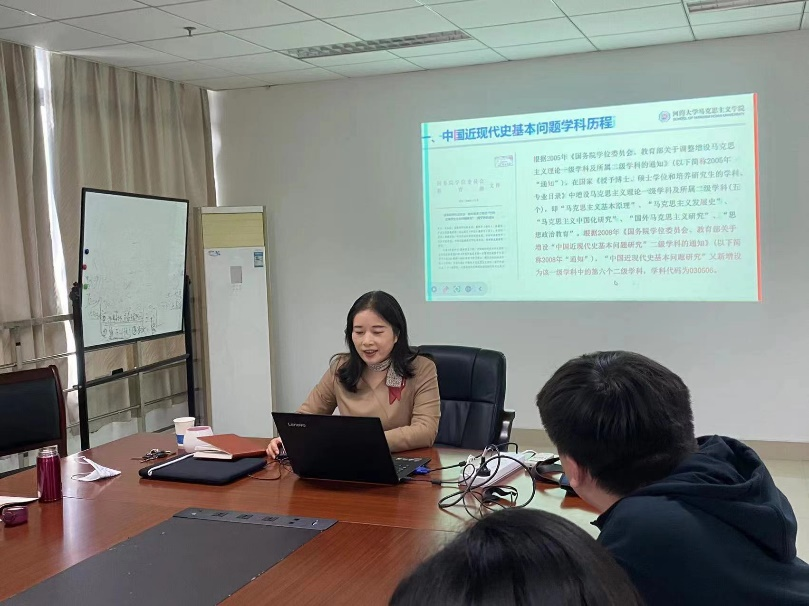 本次研讨会主要分为三个环节。首先,李宁教授向同学们介绍了本学科的发展历程,并从马克思主义理论学科下几个二级学科关系的角度阐释了学科属性。其次,同学们汇报了近期学习和生活情况。研一的新生同学汇报课程学习情况并交流了对中国近现代史基本问题研究学科的初步认识;研二的同学汇报了开题报告准备情况;研三的同学对毕业大论文、小论文进展进行了汇报。最后,学科组导师对同学们的汇报进行点评发言。
