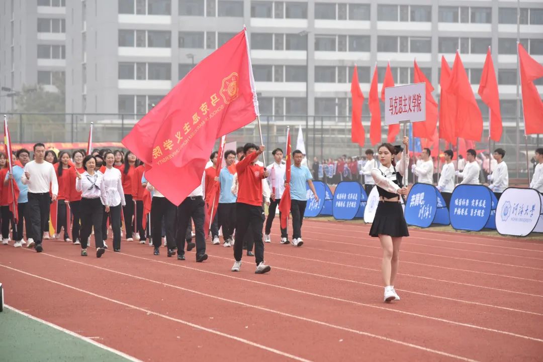 2022年11月11日,bw必威西汉姆联官网第五十八届田径运动会如期举行。开幕式上,马院学子的入场方队,可谓是“少年意气强不羁,虎胁插翼白日飞”,走出了马院学子的朝气蓬勃,走出了马院学子的意气风发!