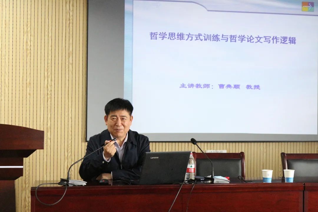 为帮助同学们构建系统的哲学思维,提高哲学论文写作的逻辑能力,11月24日上午9点50分,公司特别邀请到江苏师范大学bw必威西汉姆联官网曹典顺教授为同学们作题为“哲学思维的训练与哲学论文的逻辑”的报告,报告在厚学楼1208举行,公司部分硕士生参加。