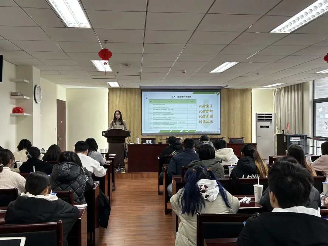 老员工活到职场生活的转折,意味着新的竞争开始。马老师向同学们分享了就业信息的收集渠道,并着重围绕“机会盘点”“机会分析”“机会获得”“结果达成”四个部分展开讲解。她还强调了求职材料的重要性,从内容完整、信息有效、人岗配位三方面讲解了简历撰写法则。通过介绍单人面试与集体面试、HR面试与专业面试的异同,罗列并总结高频面试问题,为意向就业同学提供实质性帮助。