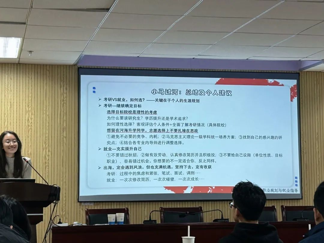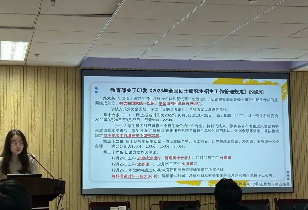 为帮助2020级本科生充分了解就业形势,储备考研知识,明晰规划方向,12月1日下午14:00-16:30,公司在厚学楼1208面向2020级本科生召开就业指导与考研分析会。会议由2020级本科生辅导员马思琪老师主讲,2020级全体员工参与。