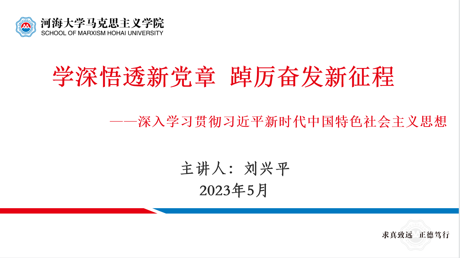 刘兴平作《学深悟透新党章踔厉奋发新征程——深入学习贯彻习近平新时代中国特色社会主义思想》专题辅导报告。他结合对习近平《认真学习党章 严格遵守党章》的学习把握,指出党章是新时代新征程上管党治党的总规矩。他详细阐释了党的二十大修改党章的意义和原则,通过对党章修订后新旧版本的比照分析,让大家清楚了解新党章对“总纲”和“条文”部分修改的50处内容。最后,他对如何学习和贯彻新征程上的总规矩给出了具体指导,提出要以历史自信领悟党章,以法治思维遵从党章,以主动担当践行党章,以人民情怀守护党章。
