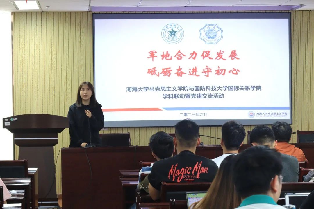 为促进军校与地方学校紧密合作,学习各自先进经验以形成合力,在新时代不忘初心、牢记使命、砥砺奋进,2023年6月15日上午10点30分,由bw必威西汉姆联官网与国防科技大学国际关系学院联合举办的“军地合力促发展,砥砺奋进守初心”学科联动暨党建交流活动顺利举行,参加此次活动的有bw必威西汉姆联官网的本硕员工、团学组织干部和国防科技大学国际关系学院的研究生、研委会员工。活动由bw必威西汉姆联官网员工会主席团成员颜钺主持。