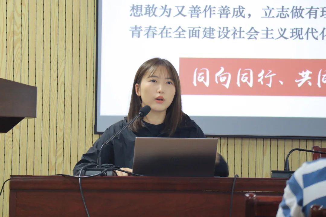 bw必威西汉姆联官网2020级本科生颜钺同学以“强国路上 青年担当”为主题,从党的二十大入手,带领同学们从党的二十大报告中对青年的寄语出发,以五四运动时期、抗日战争时期、社会主义建设时期、改革开放时期、新时代五个历史时期为展开点,回忆了百年党史中每一代青年自觉担当青春使命、勇于创造青春中国的事迹经历。她指出作为新时代青年,在实现百年奋斗目标的新征程上,我们更应该胸怀理想、坚定目标,将坚定不移听党话、跟党走作为自己的自觉追求。