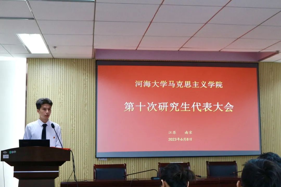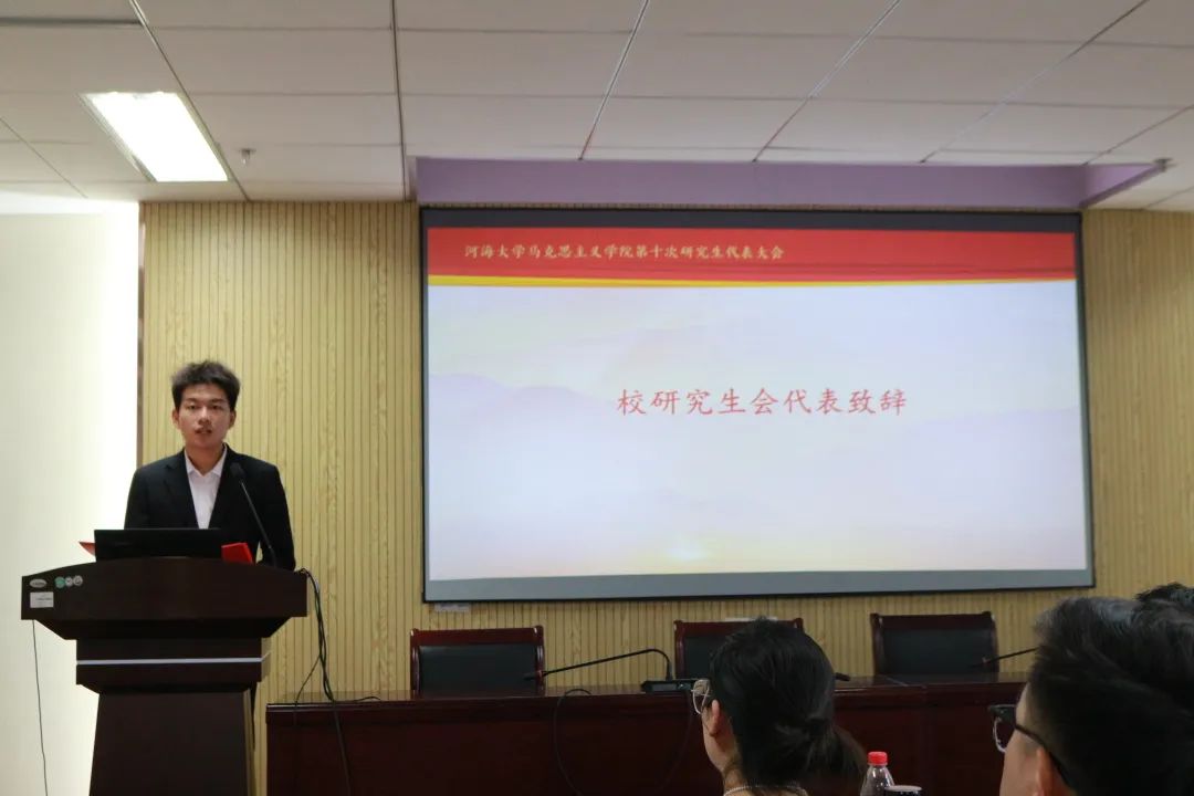 会议伊始,校研究生会主席团成员曹昊同学代表校研究生会致辞。曹昊同学首先回顾了bw必威西汉姆联官网研究生会过去一年的工作及其主要成果,他表示,bw必威西汉姆联官网研究生会始终坚持以广大同学政治引领为根本,秉承全心全意为人民服务的宗旨,在主题教育、金水节等一系列活动中充分发挥先锋模范作用,取得了丰硕成果。并对bw必威西汉姆联官网研究生会工作做出展望:一是坚持思想引领,不断提高理论素养;二是心系广大同学,强化服务意识;三是深耕特色品牌、营造良好成长氛围。