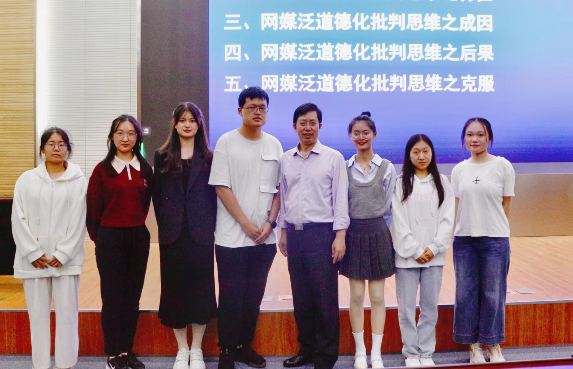 讲座伊始,黄明理教授从当今网络不同思想潮流出发,以幽默诙谐的语言提纲挈领地介绍了泛道德化批判的概念、表现和特征。他指出,泛道德化批判作为当今时代弥漫于网络空间中的道德现象,在网媒时代普遍存在且屡屡不绝,因而具有一定的研究价值。