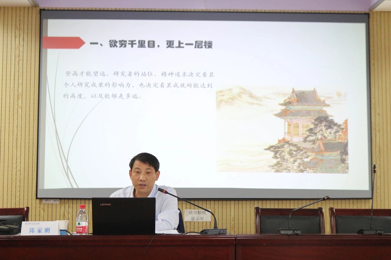陈家刚教授聚焦青年教师的自我认识和科研方法这两个关键问题,做出具体指导。陈家刚教授以阳春白雪、诗情画意的语言,从诗词切入,多角度深入探讨了“做什么样的研究”和“做什么样的科研人”两大问题。针对这两大问题,陈教授细分为十个部分进行论述。在第一部分“欲穷千里目,更上一层楼”中,陈教授强调研究者的站位和精神追求,决定了研究成果的深度远度。此后,陈教授以自身调研交流的事迹为例,为青年研究者在学科领域的深耕、对前沿问题的把握、对研究方式的多样化探索等提供借鉴。在阐明“十个问题”后,陈教授以自己的论文为实例,从整合资料到一稿二稿的修改设置,为青年研究者们做出切实指导。