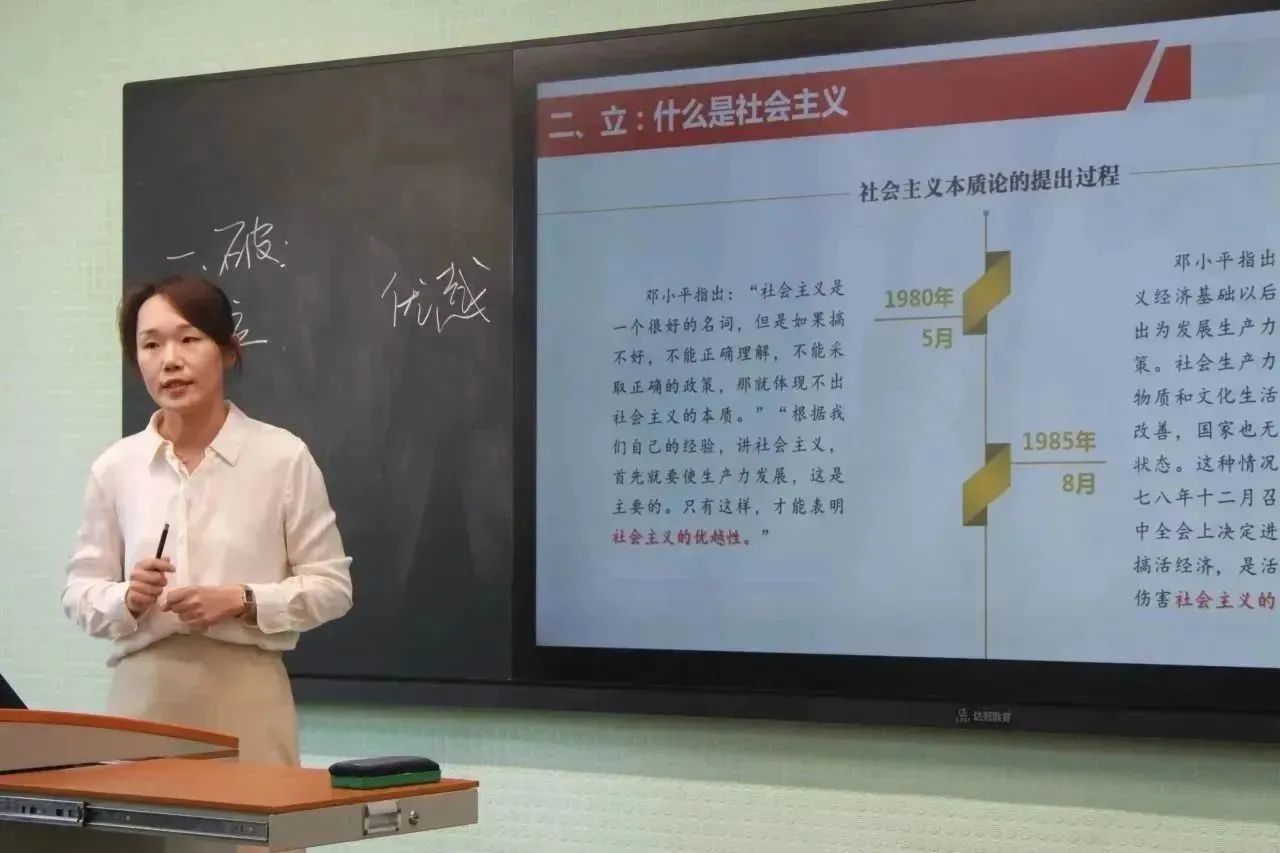 陈晶老师以“邓小平理论首要的基本理论问题”为主题,在“破”“立”“合”中探寻“什么是社会主义”,并在课堂小结和课后思考中升华主题,引人深思。