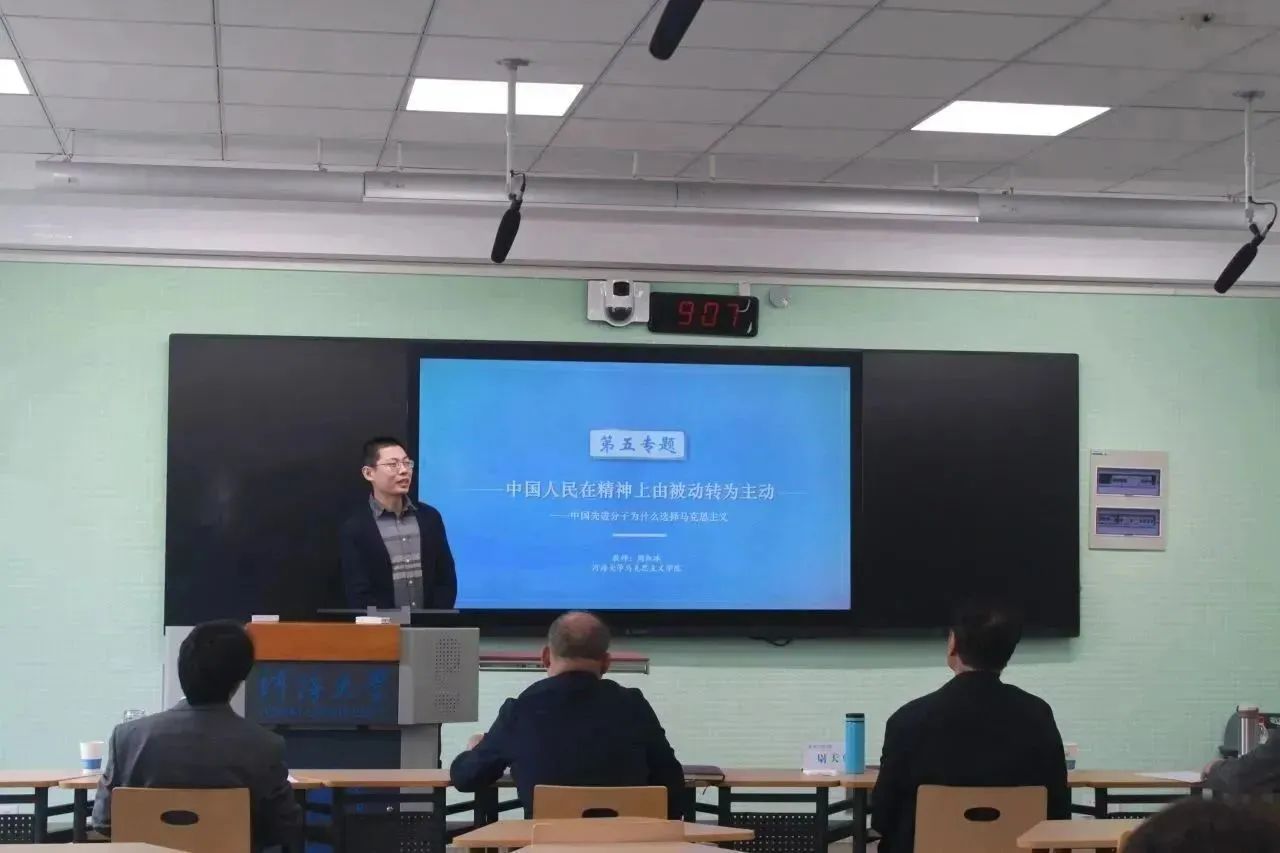 张力力老师以中国精神内涵为主题提出三个问题,将青年人现状分析与专业理论知识相联系,对问题进行深入讲解。在教学最后,张老师谈到中国精神的深沉性、历史性等具体特性,由此例证时代性和民族性的辩证统一。