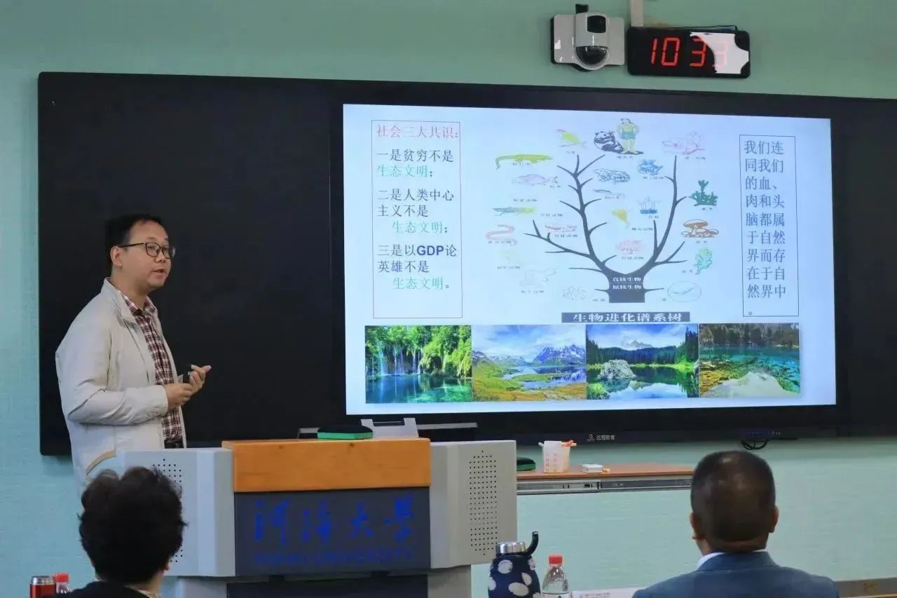 王常冉老师以“生态文明建设的成就”为题,以党的十九大、党的二十大以来相关成就为立足点,分别从核心理念、生动实践、全球视野、责任担当四个角度出发,深入解读了习近平总书记“牢固树立和践行绿水青山就是金山银山的理念,把建设美丽中国摆在强国建设、民族复兴的突出位置”的生态思想。
