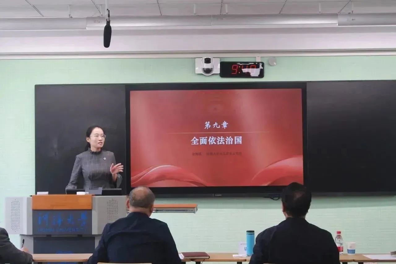 冯馨蔚老师以“世界的物质性与发展规律”为题,阐述了“联系与发展的普遍性”、“事物变化发展的实质”等要点,并从自然界、人类历史、社会发展三个角度出发加以深化说明。最后,通过展现国家大力推动发展、支持改革的种种举措,强调了正确面对新旧事物,虚心接受新事物发展的重要性。