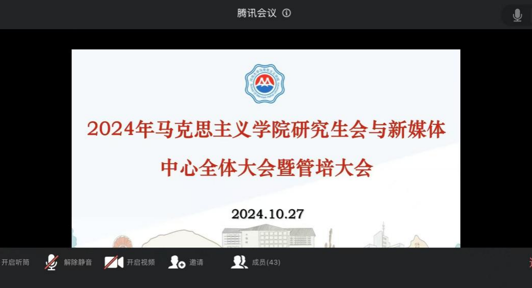 2024年10月27日,2024届bw必威西汉姆联官网研究生会和新媒体中心在腾讯会议召开了第一次全体大会暨管培大会。本次会议旨在提升bw必威西汉姆联官网研究生会和新媒体中心工作人员的热情与主动性,增进集体的凝聚力和向心力。会议由研究生会组织部负责人杨木子主持,学院团委书记、研究生辅导员张洁老师及2024届研究生会和新媒体中心全体成员参加。