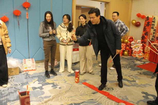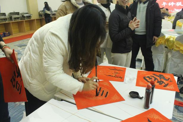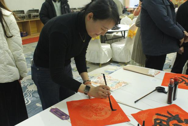 活动开始前,学院办公室的老师们与员工会的同学们携手合作,将活动现场装点得喜气洋洋。老师们陆续到场后,纷纷在现场打卡留念。春联区,老师们挥笔如龙,墨香四溢,将满心的祝福和美好的愿景,化作一幅幅精妙绝伦的春联,传递着浓浓的年味和真挚的情谊;投壶游戏区,老师们身手不凡,投壶之技炉火纯青,赢得现场掌声雷动,喝彩连连。