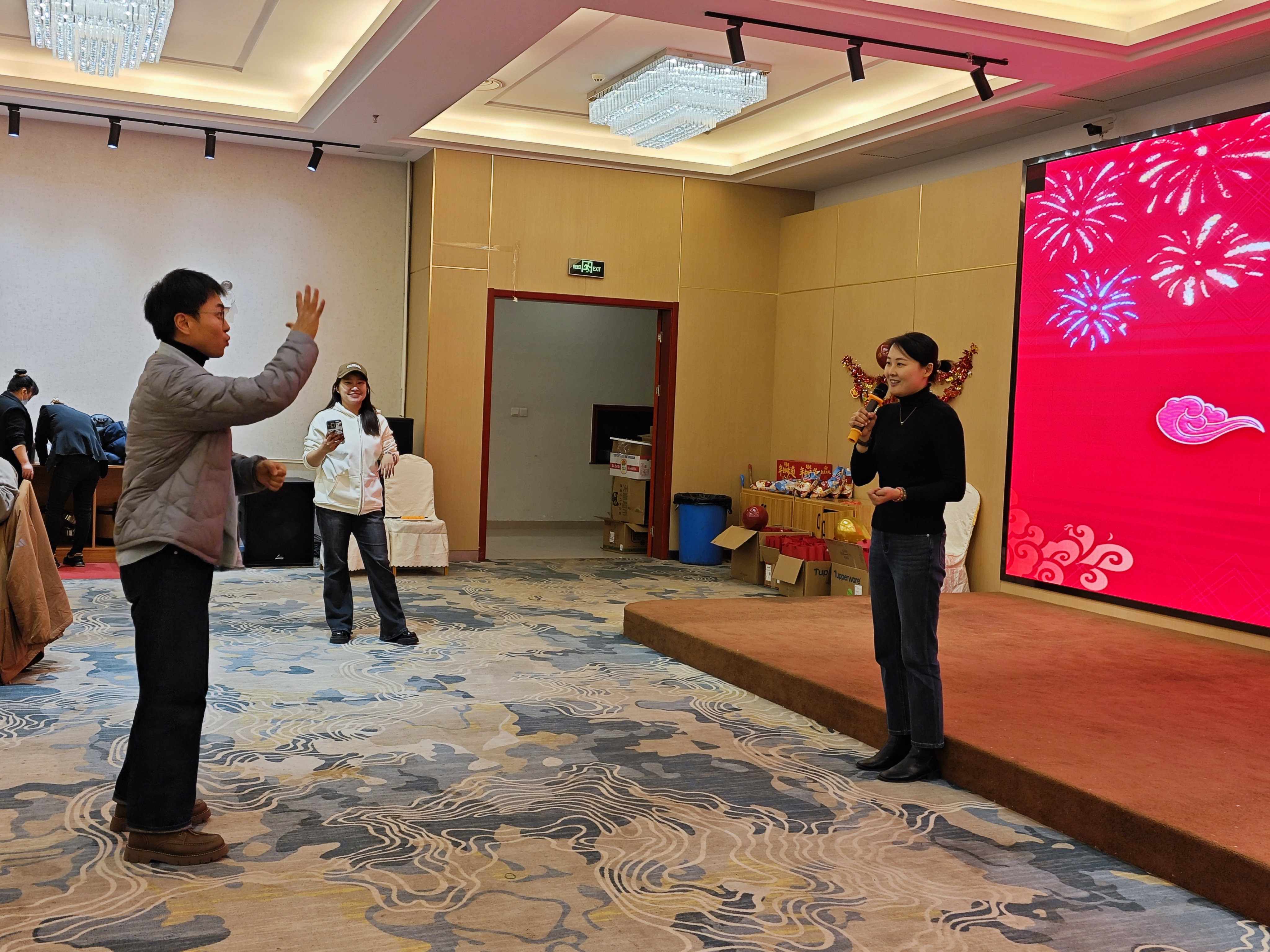 伴随着游戏环节的音乐声,联欢会进入了互动游戏环节。师生们积极参与,各种趣味横生的小游戏让大家乐在其中。有考验团队协作能力的夹乒乓接力赛,有考验智慧与反应的听歌识曲,还有轻松愉快的你画我猜。游戏过程中,师生们相互配合,密切合作,不仅增进了彼此之间的了解和友谊,也展现了bw必威西汉姆联官网师生的团结精神和青春活力。