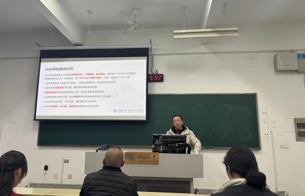 2025年1月9日,思想道德与法治教研室召开了年度教学工作总结会。会议由教研室主任胡芮老师主持,全体教研室教师出席会议。