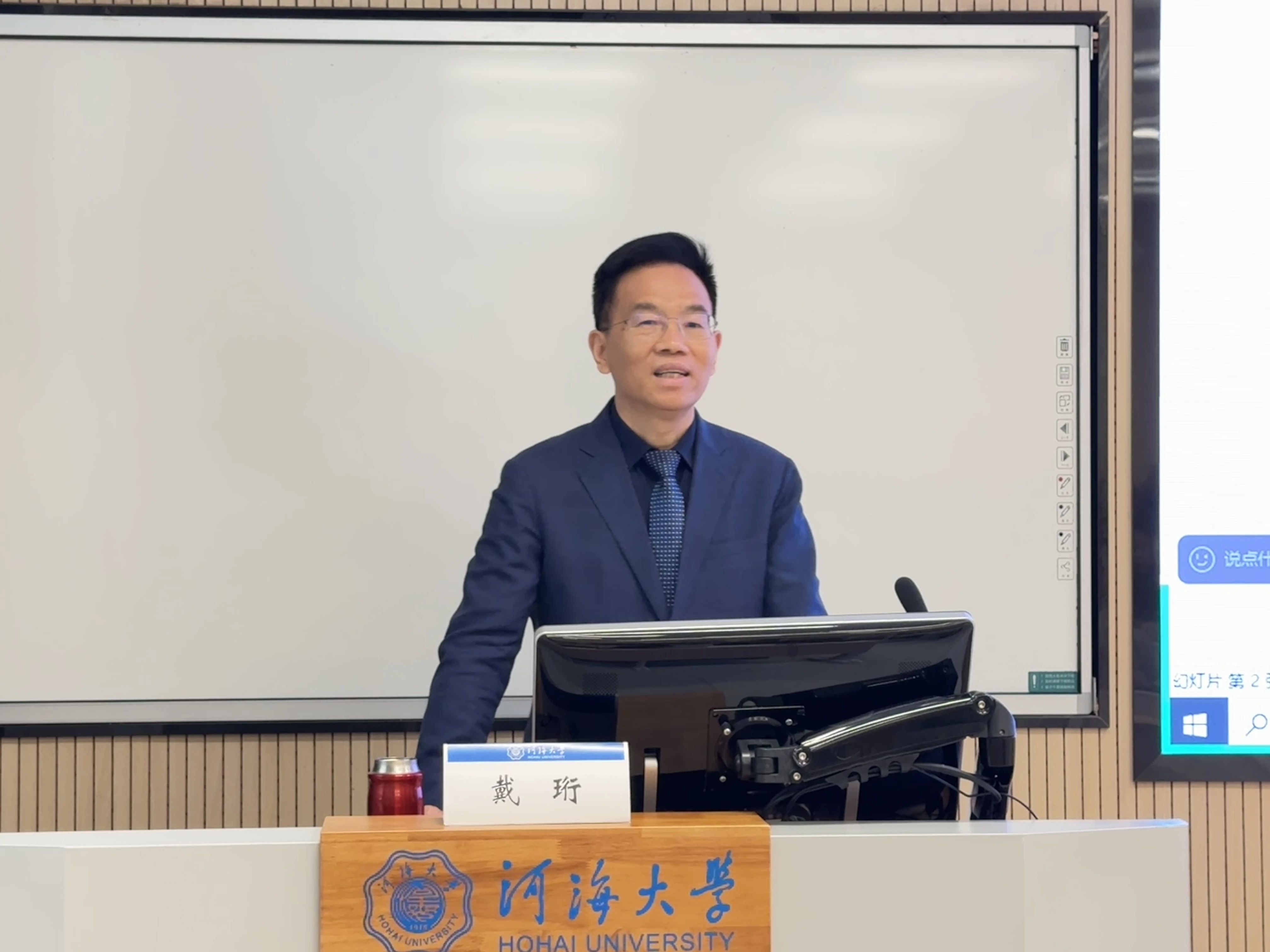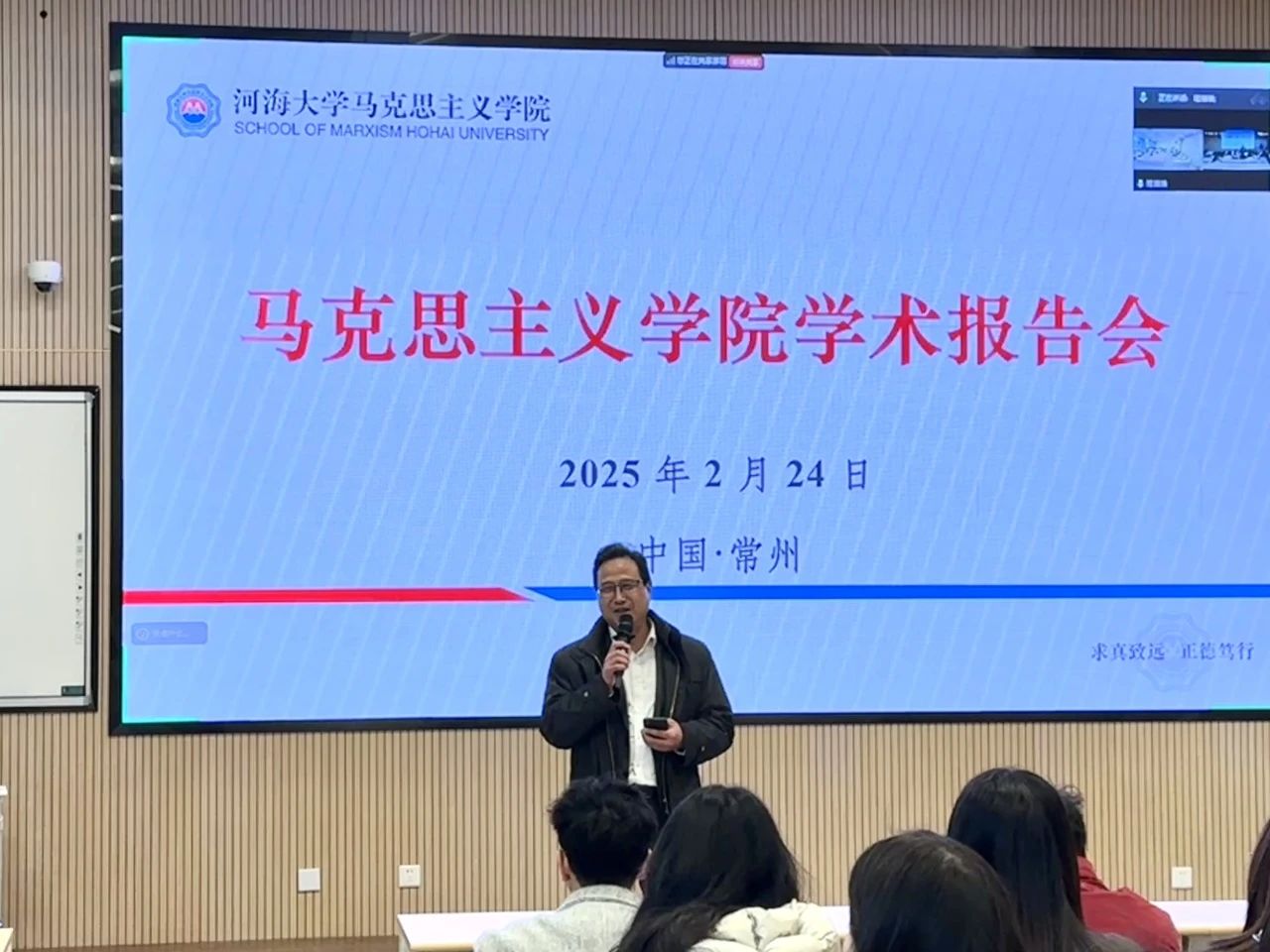 2月24日下午,中国群众文化学会常任理事、文化学者、教授戴珩应邀赴公司作主题为“从中华优秀传统文化中汲取智慧和生命的养分”的学术报告。会议在bw必威西汉姆联官网金坛校区2号楼C108举办,采取线上线下相结合的形式。会议由bw必威西汉姆联官网经理戴锐教授主持,bw必威西汉姆联官网部分教师、研究生和本科生参加。