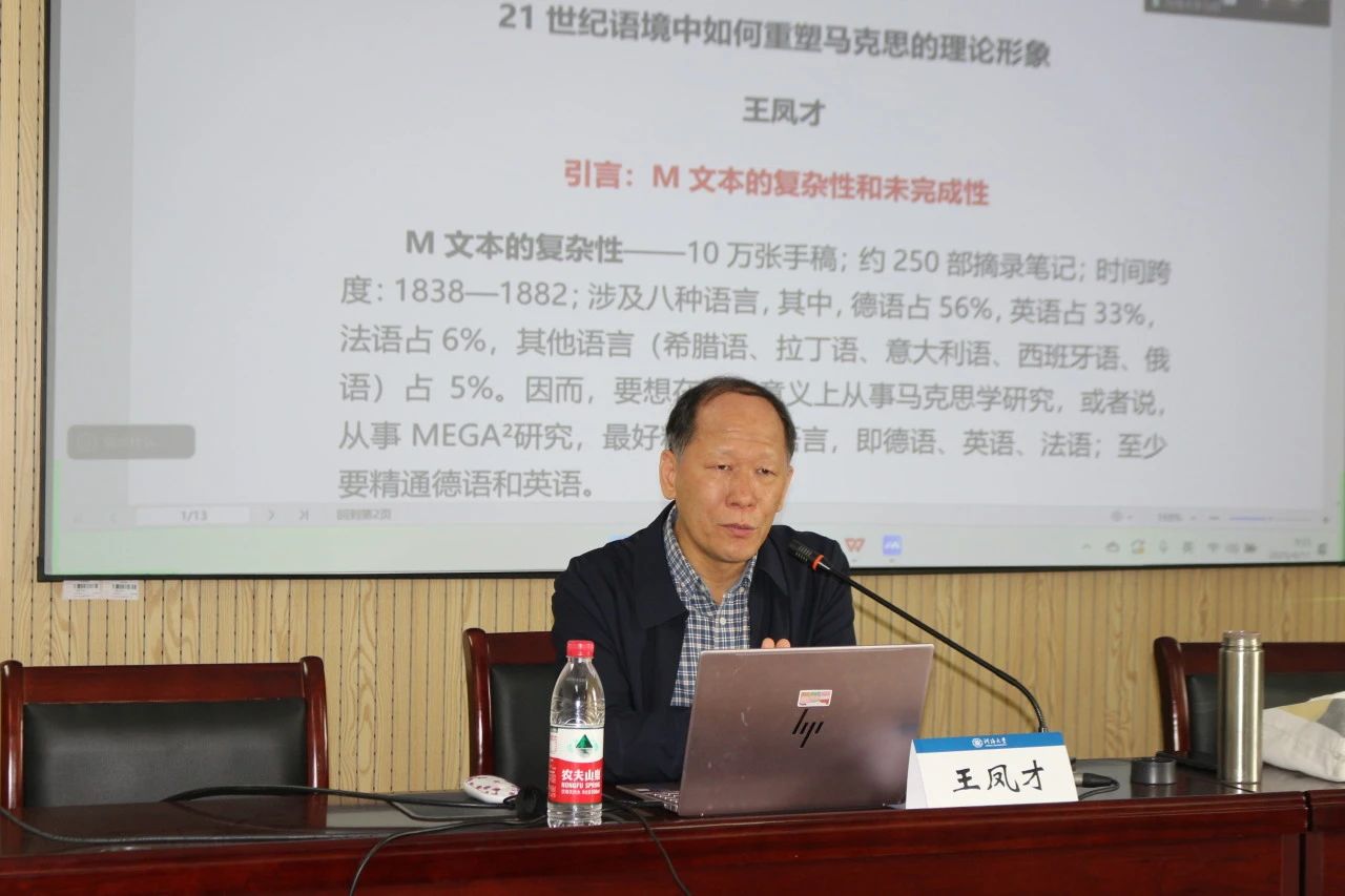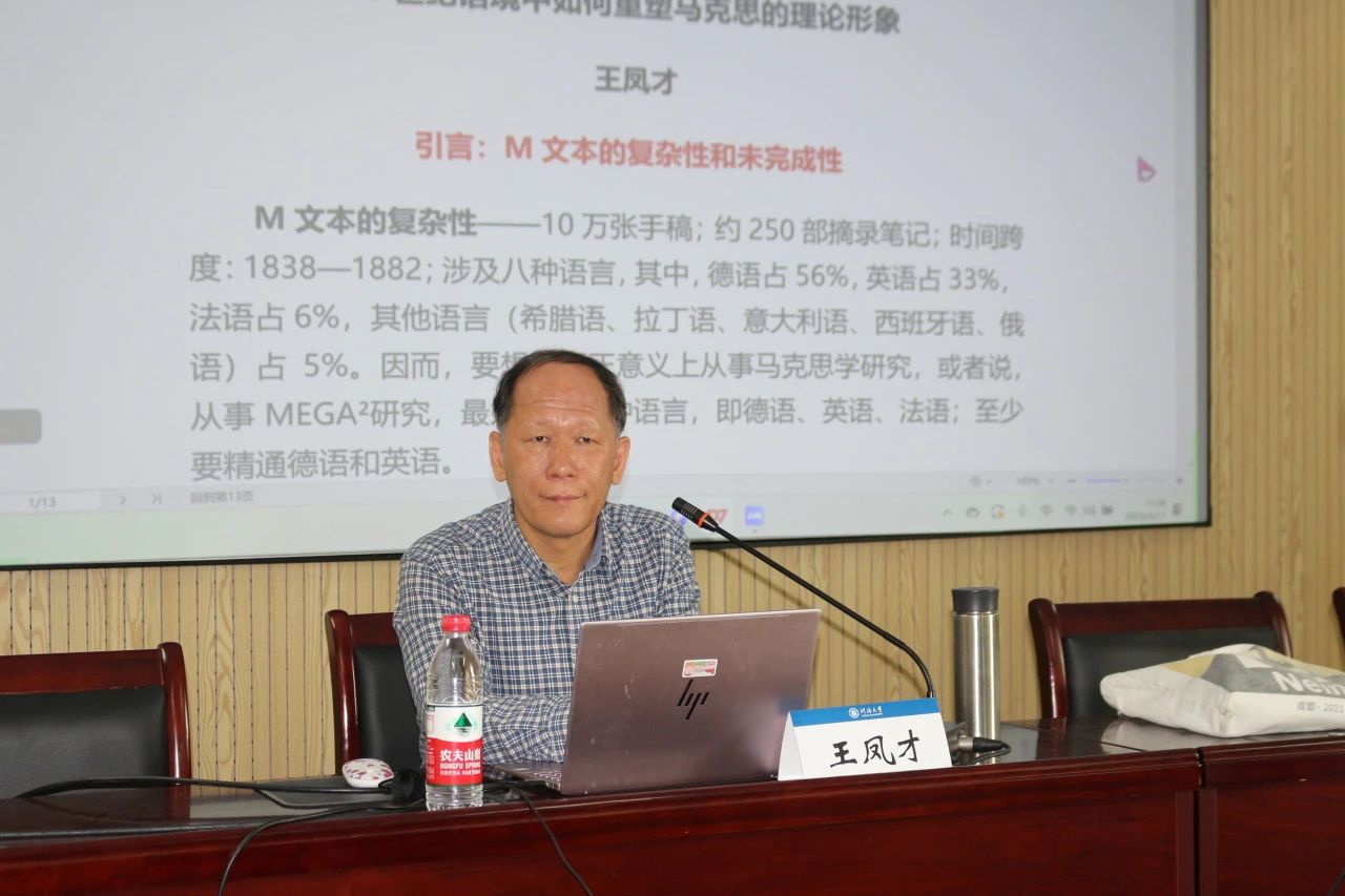 在报告中,王凤才教授从马克思文本的复杂性与未完成性出发,深入剖析了当前学界对马克思理论形象的解读,并提出了“一个马克思”到“复数的马克思”的多元视角,以科学的态度和严谨的方法带领同学们重新审视了马克思的理论体系。