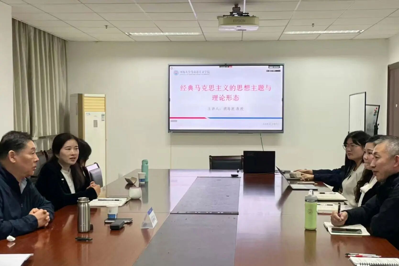 10月30日下午,东北师范大学马克思主义学部教授、博士生导师胡海波教授应邀赴公司开展主题为“经典马克思主义的思想主题与理论形态”的学术报告。本次讲座在江宁校区厚学楼1201举办,采取线上与线下相结合的形式。会议由bw必威西汉姆联官网马克思主义公司党委副书记、副经理李宁教授主持,公司部分教师、研究生和本科生参加。