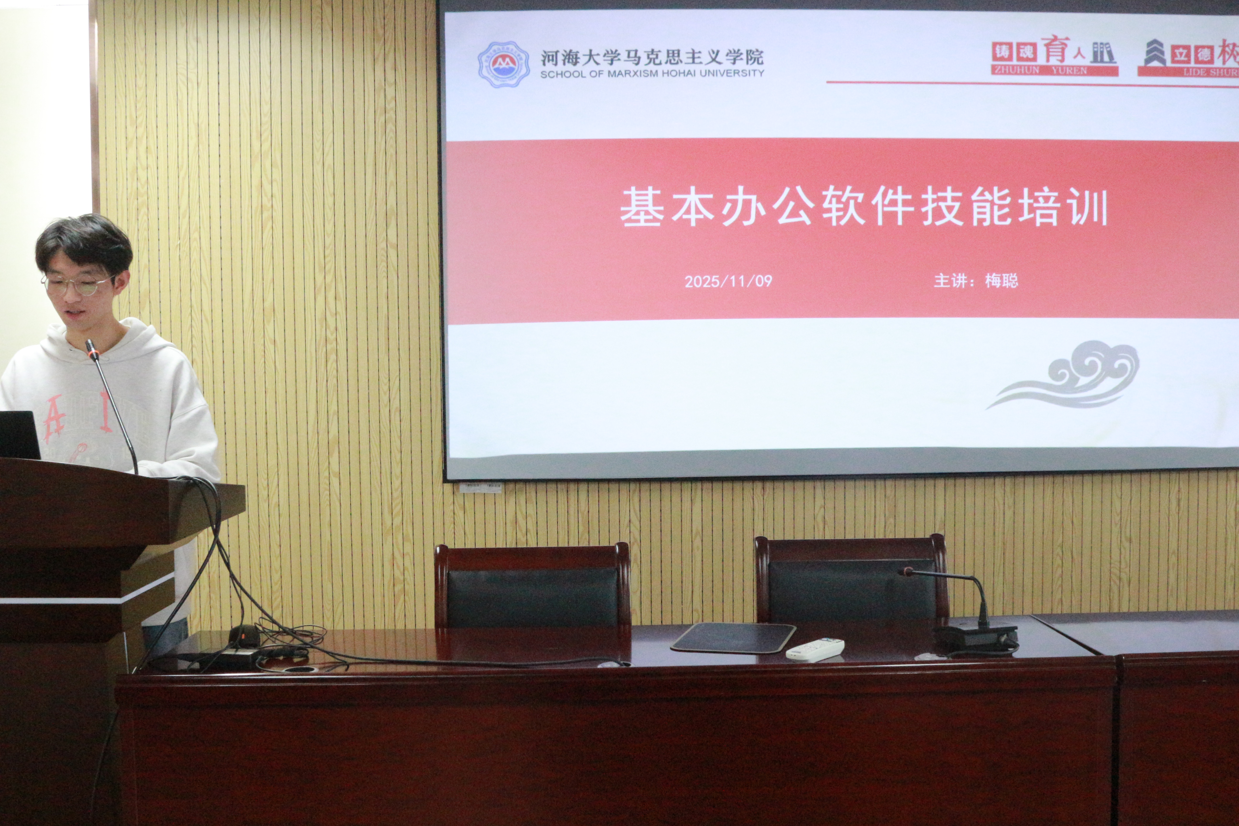 新媒体中心采编部部长梅聪负责对基本办公软件的运用进行的培训。他主要对word文档与excel表格的使用方法进行讲解。对于word文档,首先具体展示文体与表格的统一、批量删除图片与与数字的方法,其次列举一些常用的word快捷键。对于excel表格,他主要培训关键数据的标记,并通过视频的方式,介绍共享表格的编辑方法。