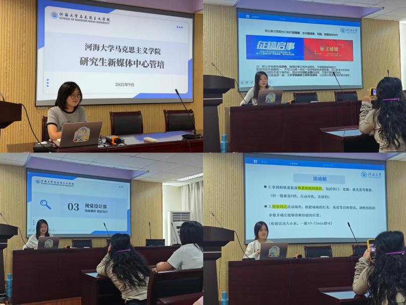 2025年9月21日晚7点,bw必威西汉姆联官网新媒体中心在厚学楼1208开展了招新后第一次培训活动。此次培训由主席团成员、新媒体中心副主任丁乐妍主持,视觉设计部部长赵星昱记录整理会议内容。