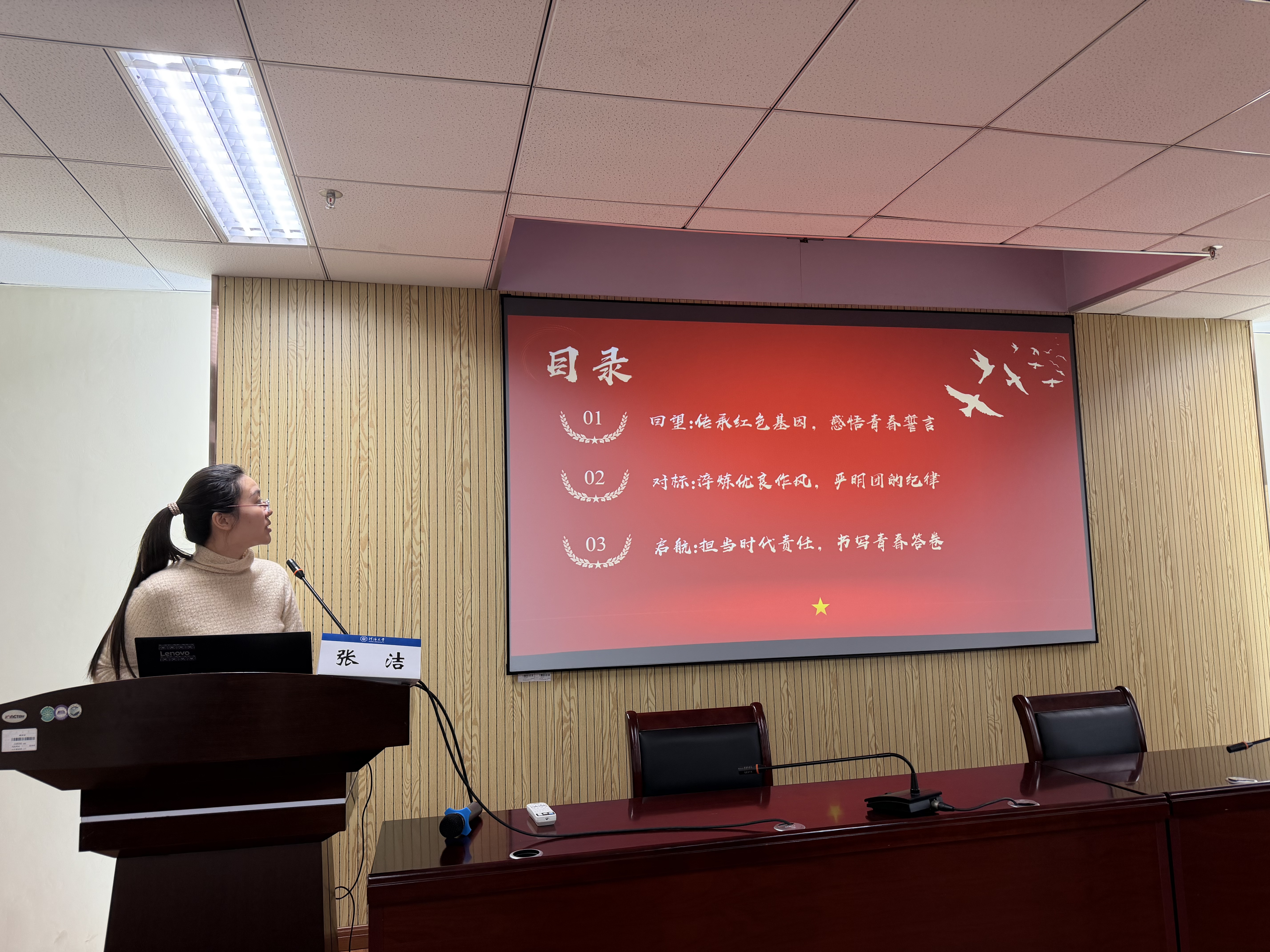 第一部分“回望:传承红色基因,感悟青春誓言”中,张洁老师带领全体团员青年,系统回顾了中国共产主义青年团在党的坚强领导下,紧随时代步伐、不断发展壮大的光辉历程。一段段波澜壮阔的历史,彰显了一代代青年跟党奋斗的初心与忠诚,引导同学们深刻理解新时代中国青年运动的主题、方向和使命,将“听党话、跟党走”的信念作为政治灵魂和前进方向,从而筑牢为实现中华民族伟大复兴中国梦而奋斗的理想信念根基。