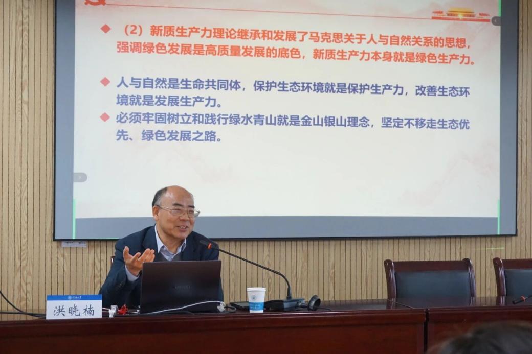 其次,洪晓楠教授深入解读了“坚持人民至上”这一重要理念,指出其是马克思主义的根本立场,并从政治、文化、社会、生态文明建设以及治国理政、国际视野等多个维度对“人民至上”的丰富内涵与实践要求进行了深度阐释。再次,洪晓楠教授围绕“新质生产力”展开讲解,强调新质生产力是马克思主义生产理论同新时代我国生产力发展实际相结合的产物,是马克思主义生产力理论中国化时代化的重要成果,这一概念的提出也为构建中国话语和中国理论体系提供了有力示范。