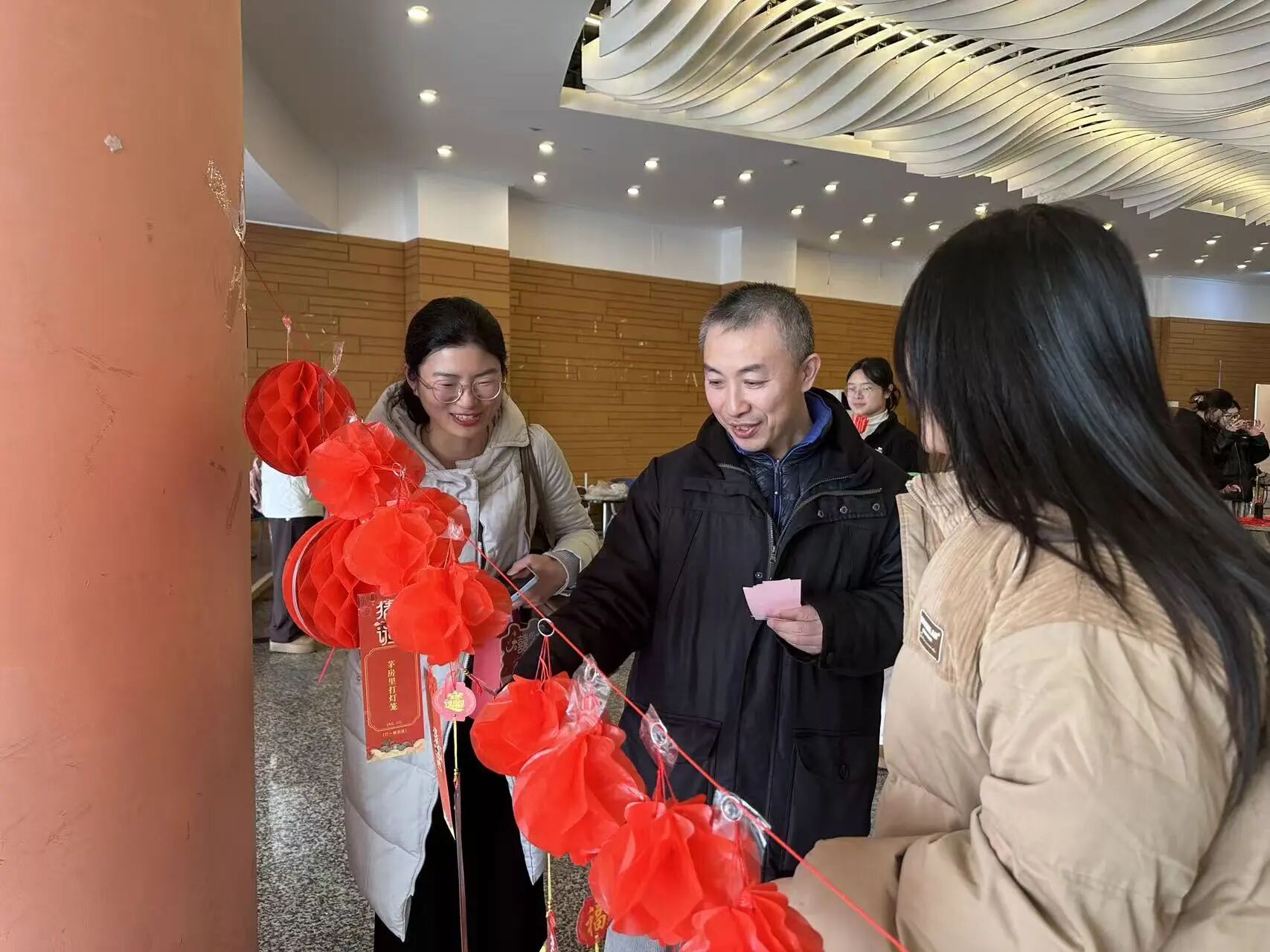 猜灯谜摊位前早已人头攒动,一个个精巧谜面暗藏巧思,老师们兴致盎然地驻足思索,不时相互探讨、踊跃抢答,每一次猜对都伴随着阵阵欢呼,将知识性与趣味性完美融合;投壶套圈区内更是热闹非凡,老师们屏气凝神、瞄准投掷,身手娴熟的操作的精准命中,赢得现场掌声雷动,欢呼声此起彼伏。