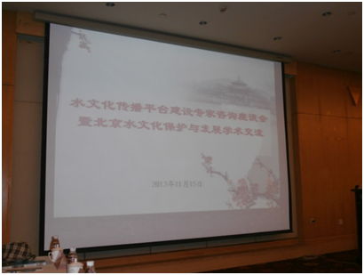 由水利部政研会、中国水利报社举办的“水文化传播平台建设专家咨询座谈会暨北京市水文化保护与发展学术交流会”于2013年11月15——16日在北京召开。会议听取了水利部领导的报告,宣布了水文化建设平台咨询专家名单并颁发聘书,并对北京市水文化遗产调查研究的成果进行了讨论和实地考察。公司尉天骄教授应邀参加了会议,在会议上发表了两次谈话,并接受了中国水利报社《水文化专刊》咨询平台专家聘书。