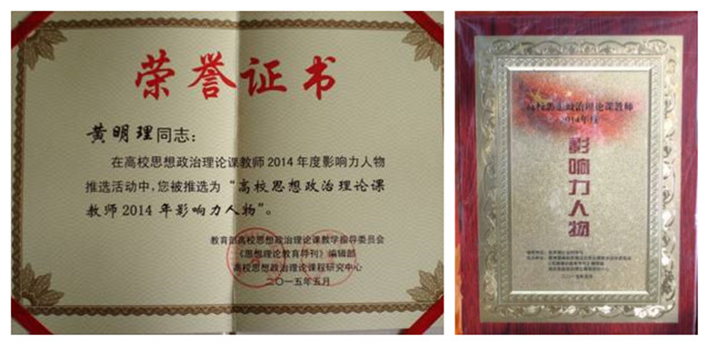 bw必威西汉姆联官网黄明理教授被评为高校思想政治理论课2014年度影响力人物,并受邀参加了表彰大会。2014年度全国一共评选出影响力标兵人物10名、影响力人物30名和影响力提名人物60名。